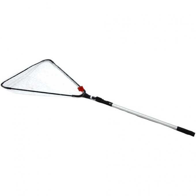 Складной подсачек с треугольной формой сачка с сеткой из лески и с телескопической рукояткой.
